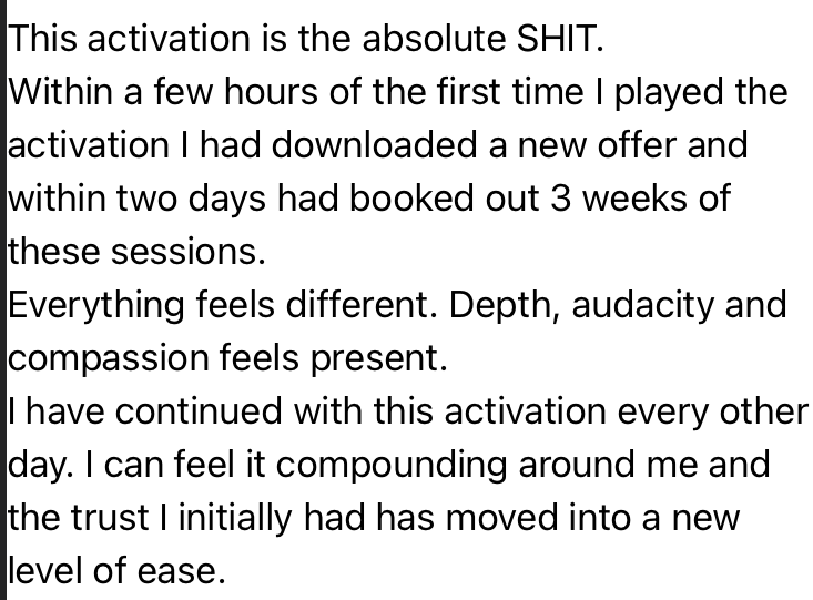 After just one week of receiving this activation Laura downloaded an offer that had been "buried deep for decades" and completely sold out all spots!